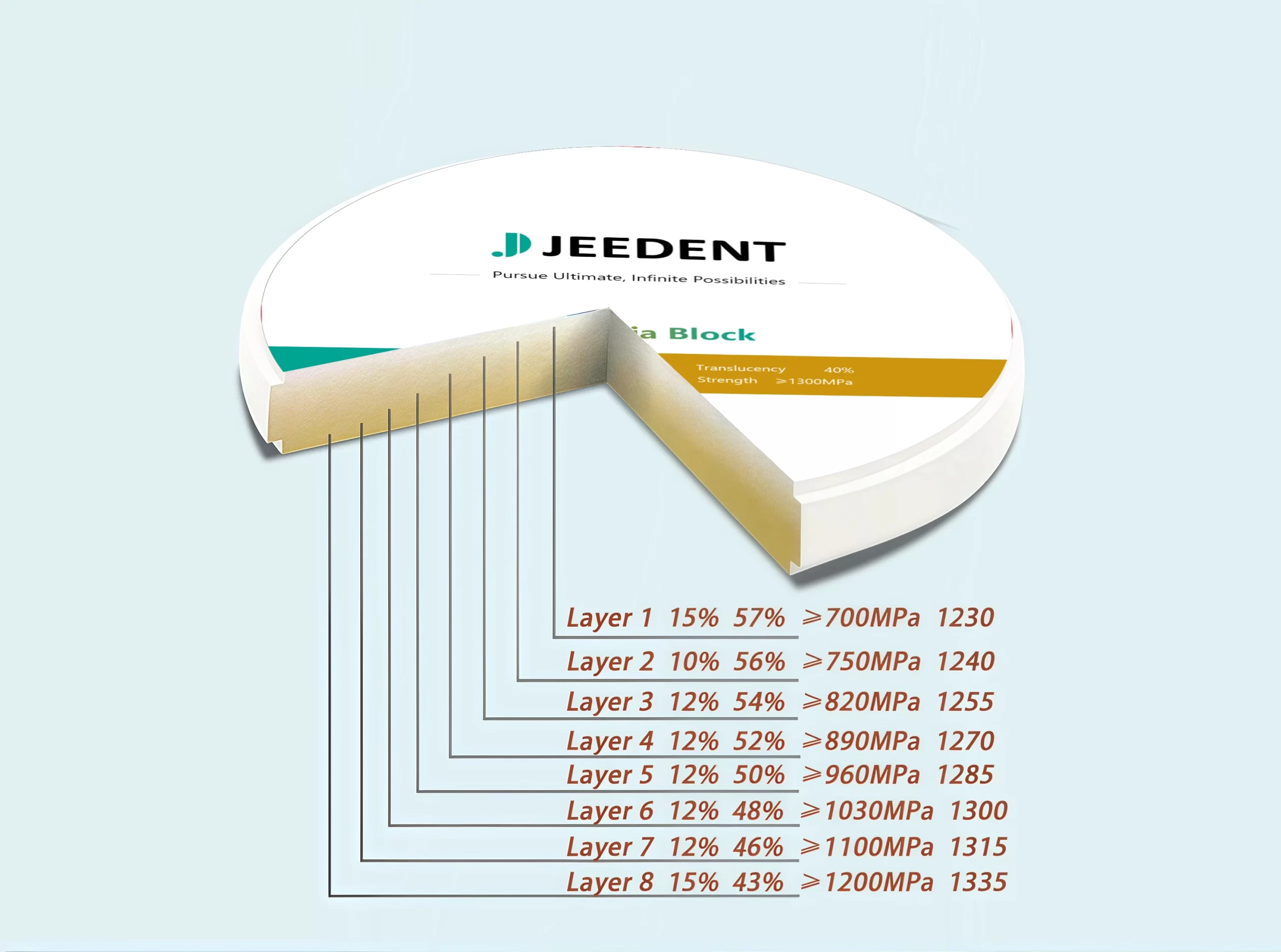 Strength ≥ 1300 MPaTranslucency 40%Vickers Hardness